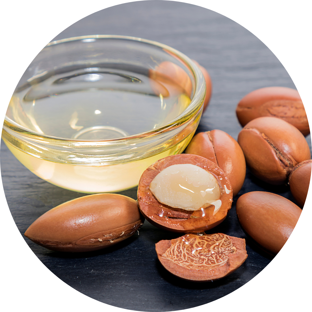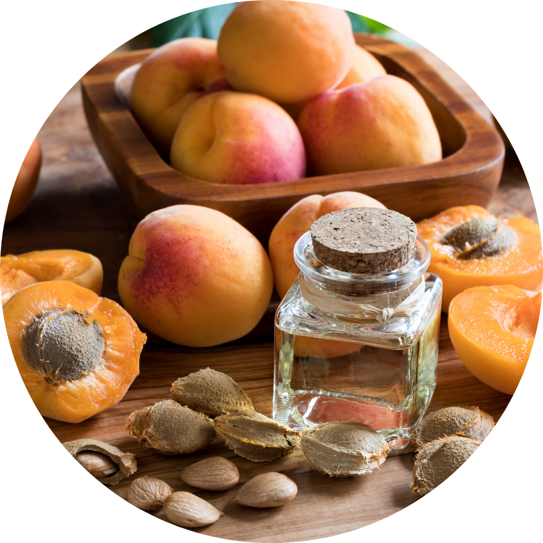 Castorolie, arganolie, sesamolie, abrikozenpitolie, zoete amandelolie, vitamine E.