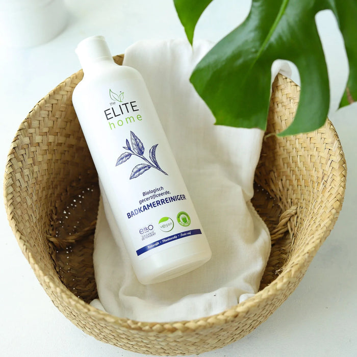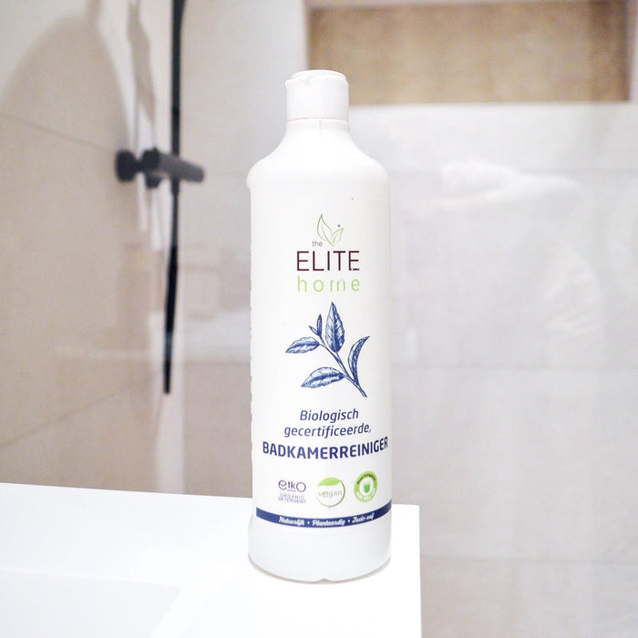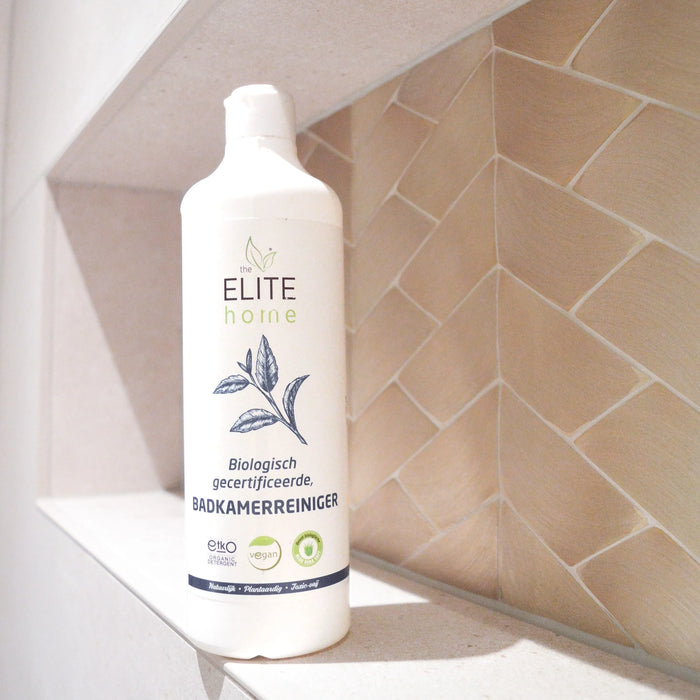 Reinig je badkamer op een milieuvriendelijke manier met de ecologische, natuurlijke badkamerreiniger van The Elite Home. Biologisch afbreekbaar, effectief tegen kalk en vuil, en veilig voor je luchtwegen.