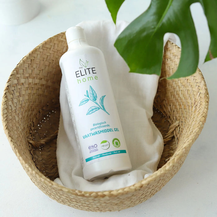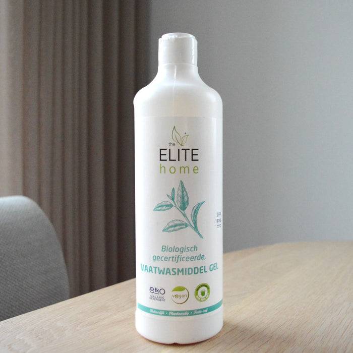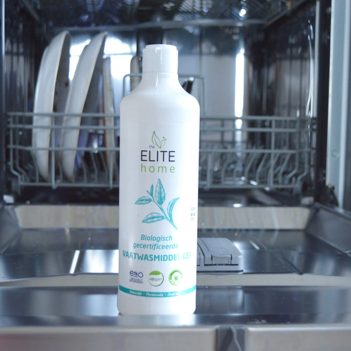 The Elite Home Vloeibaar Vaatwasmiddel is volledig natuurlijk. De protease enzymen zijn ECOCERT-gecertificeerd. Het vaatwasmiddel bevat geen GMO. De werkzame ingrediënten in The Elite Home Vloeibaar Vaatwasmiddel hebben geen hoge temperaturen nodig om geactiveerd te worden. De vaat wordt daarom ook op de eco stand van de vaatwasser schoon. Voorspoelen is hierbij niet nodig.